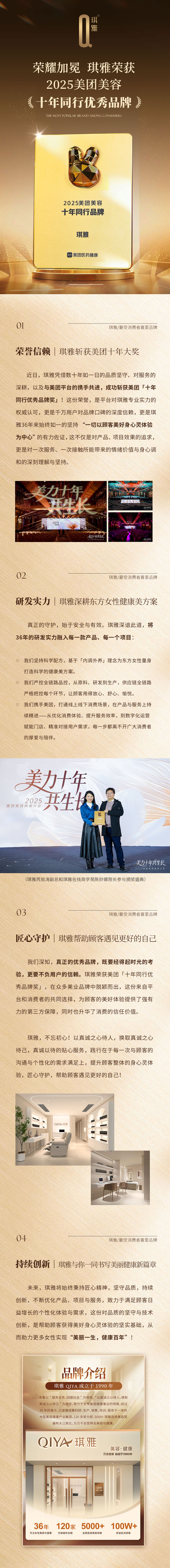 榮譽(yù)加冕!琪雅榮獲2025年美團(tuán)美容“十年同行優(yōu)秀品牌”!